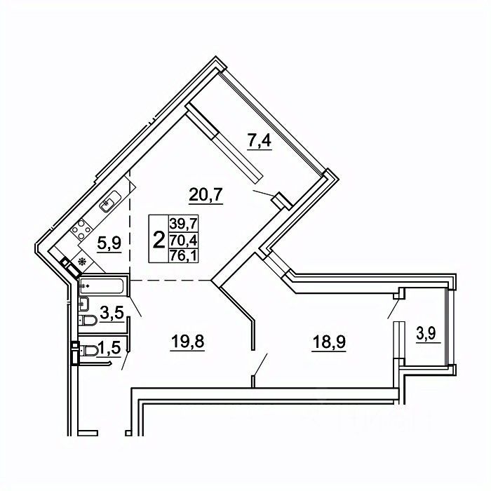продам 2-к, Лесная, 1в/113 308 103 ₽