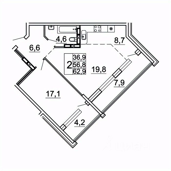 продам 2-к, Лесная, 1в/112 381 707 ₽
