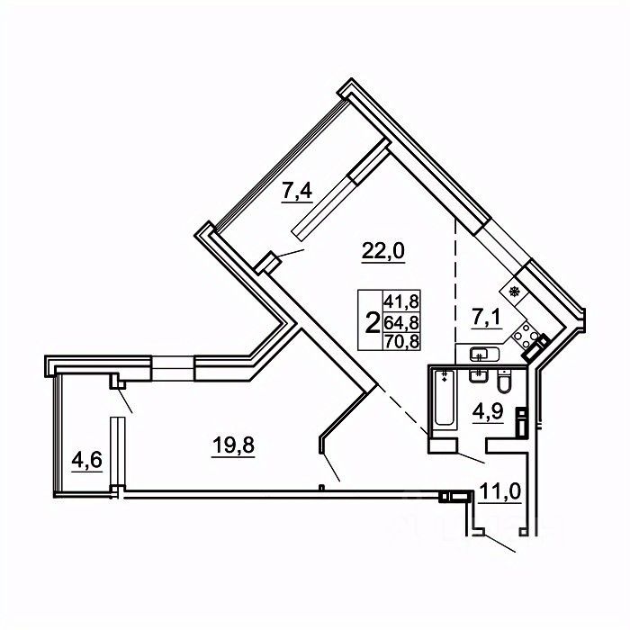 продам 2-к, Лесная, 1в/112 885 073 ₽