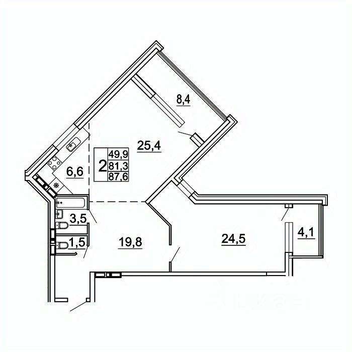продам 2-к, Лесная, 1в/115 433 702 ₽