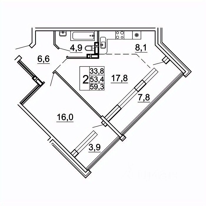 продам 2-к, Лесная, 1в/111 320 270 ₽