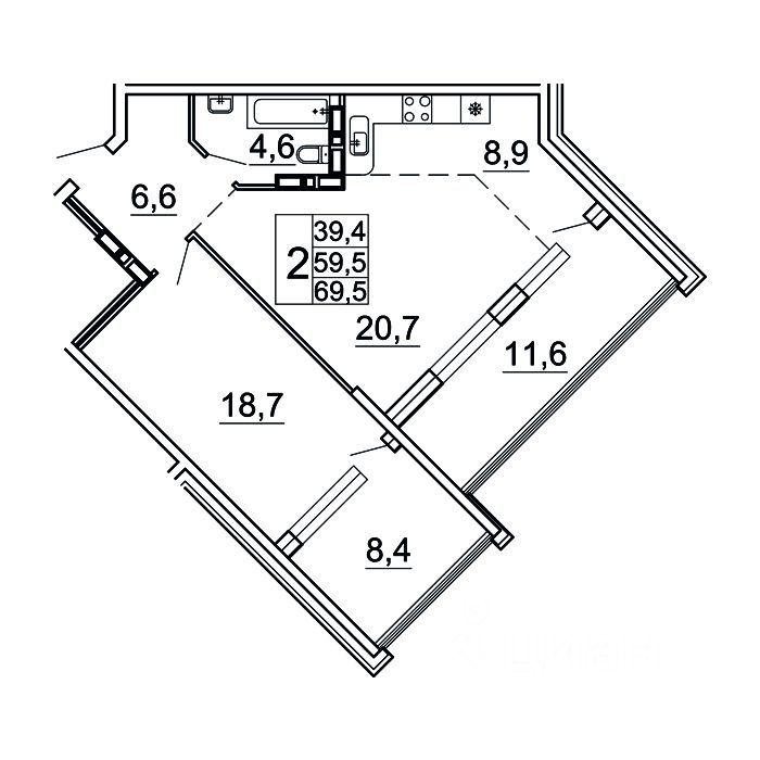 продам 2-к, Лесная, 1в/113 441 230 ₽
