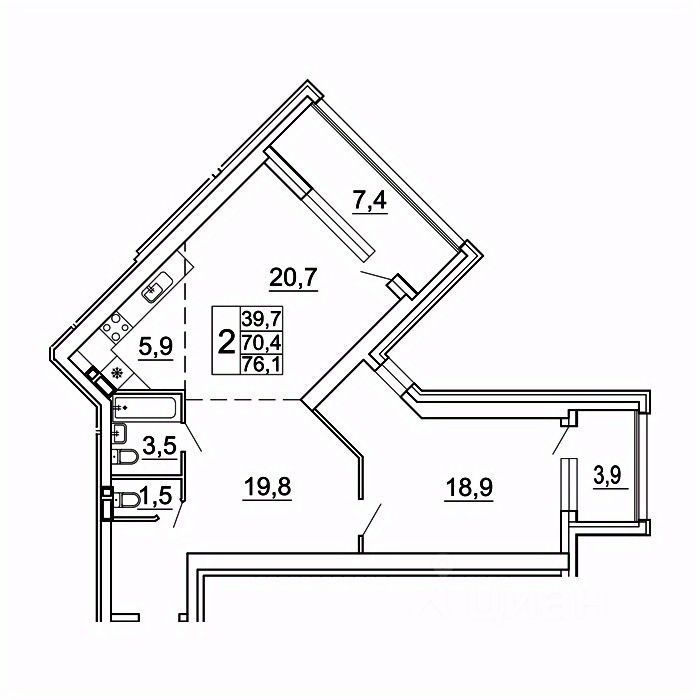 продам 2-к, Лесная, 1в/113 018 052 ₽