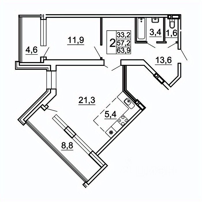продам 2-к, Лесная, 1в/112 121 607 ₽