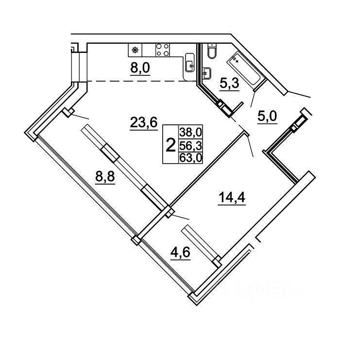 продам 2-к, Лесная, 1в/112 381 707 ₽