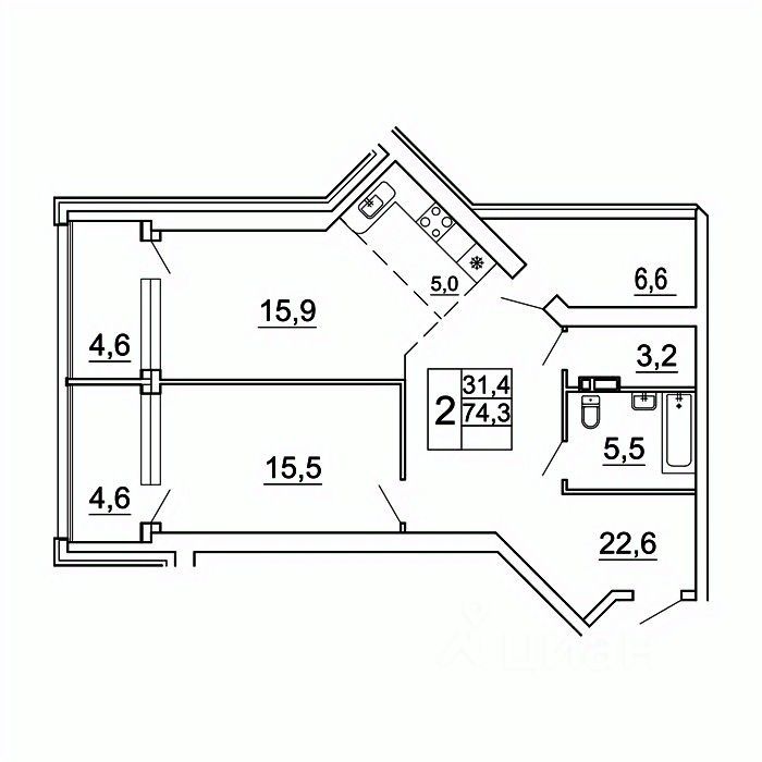 продам 2-к, Лесная, 1в/112 833 958 ₽