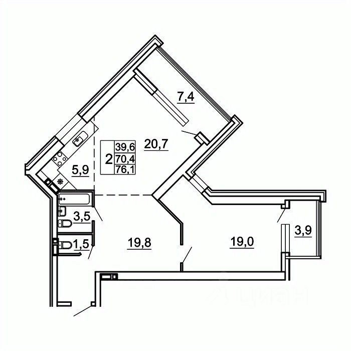 продам 2-к, Лесная, 1в/114 490 697 ₽