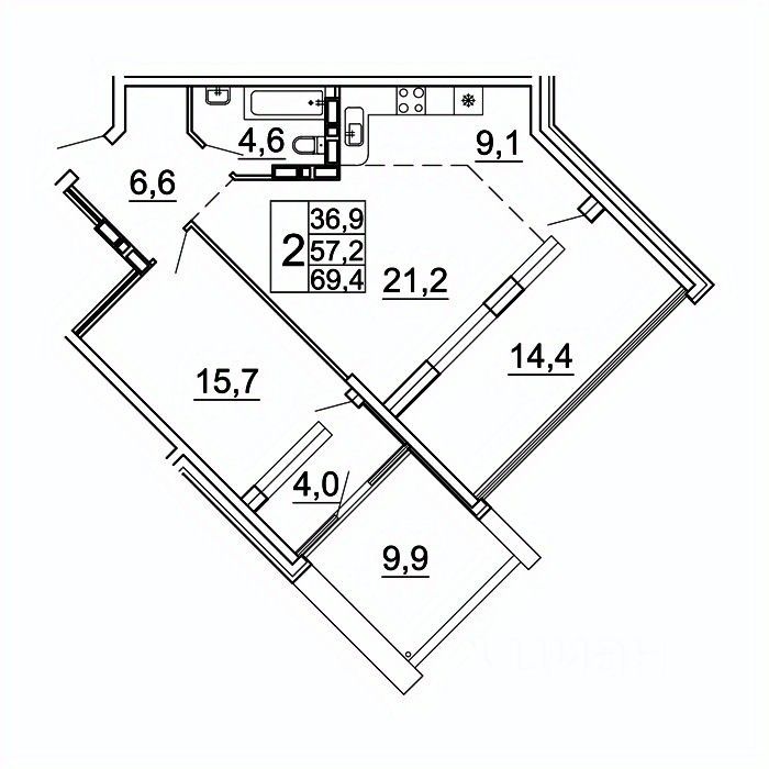 продам 2-к, Лесная, 1в/114 225 604 ₽
