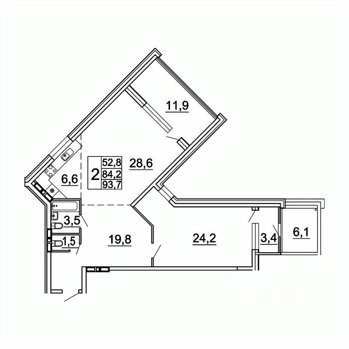 продам 2-к, Лесная, 1в/116 829 241 ₽