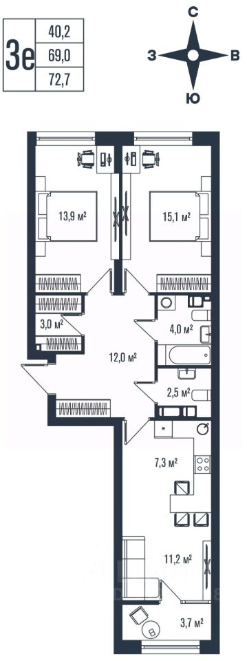 Продаётся 3-комнатная квартира в сданном доме (Тухачевского, 33к2 (Футурист)), срок сдачи: IV-кв. 2025, общей площадью 72.7 кв.м., на 13 этаже. Новый жилой комплекс ''Футурист'' от застройщика ''СИК Девеломпент-юг'' расположен по адресу город Владивосток, улица Карбышева.