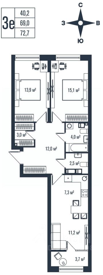 Продаётся 3-комнатная квартира в сданном доме (Тухачевского, 33к2 (Футурист)), срок сдачи: IV-кв. 2025, общей площадью 72.7 кв.м., на 13 этаже. Новый жилой комплекс ''Футурист'' от застройщика ''СИК Девеломпент-юг'' расположен по адресу город Владивосток, улица Карбышева.