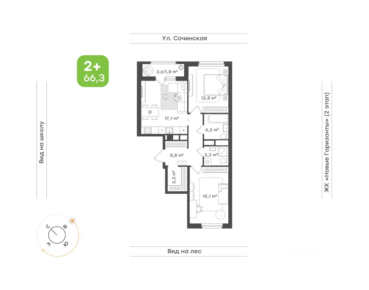 Общая площадь66,3 м2