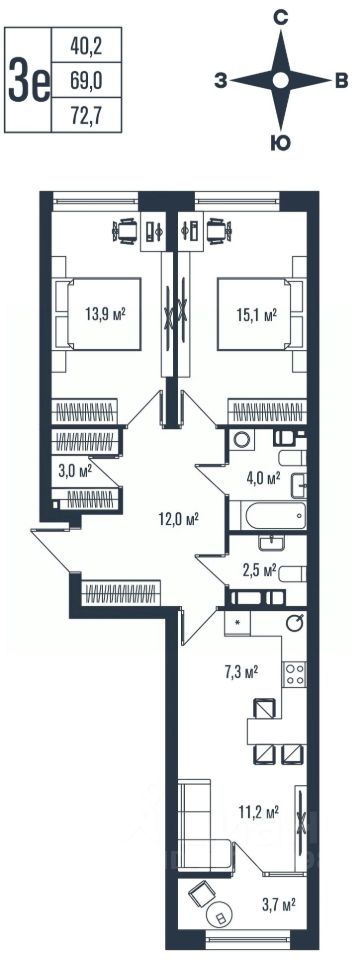 Продаётся 3-комнатная квартира в сданном доме (Тухачевского, 33к2 (Футурист)), срок сдачи: IV-кв. 2025, общей площадью 72.7 кв.м., на 15 этаже. Новый жилой комплекс ''Футурист'' от застройщика ''СИК Девеломпент-юг'' расположен по адресу город Владивосток, улица Карбышева.