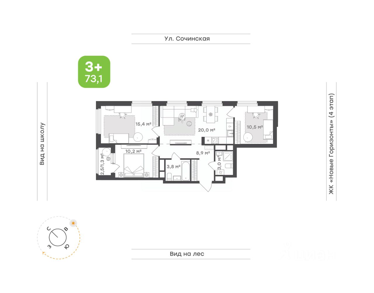 Просторная, светлая квартира, где каждый член семьи найдёт себе место Спальня — уединённое пространство с удобным местом для хранения и выходом на лоджию. Здесь можно просыпаться, наслаждаясь утренним светом и свежим воздухом Просторная кухня-гостиная — центр квартиры, где удобно собираться всей семьёй по вечерам, устраивать ужины и тёплые посиделки с друзьями. Открытое пространство создаёт ощущение свободы и лёгкости Две спальни подойдут для детей, гостей или рабочего кабинета. Светлые, просторные и уютные — они легко адаптируются под любые задачи Прихожая — вместительная и продуманная. Здесь предусмотрено удобное место для хранения, которое поможет избежать загромождённости и сохранить порядок Два санузла — один с ванной для расслабляющих процедур, и второй, с достаточным местом под стиральную машину, для комфорта всей семьи
