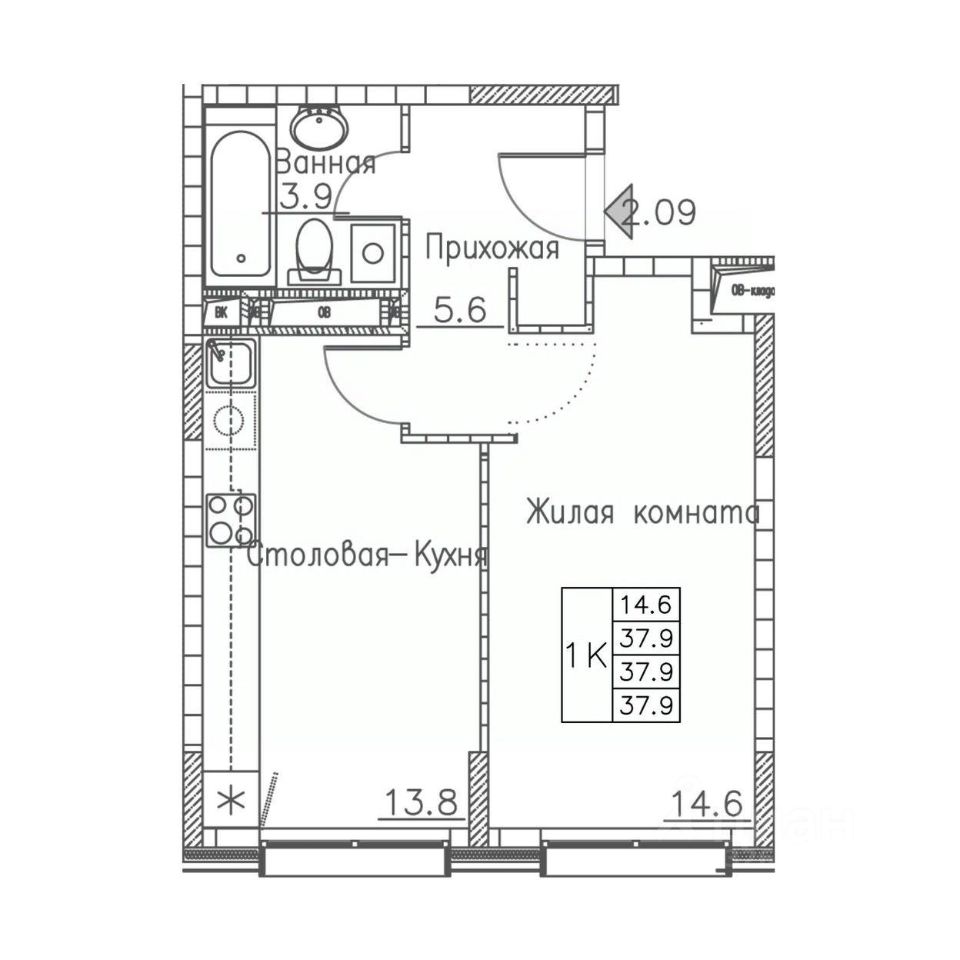 Общая площадь37,9 м2