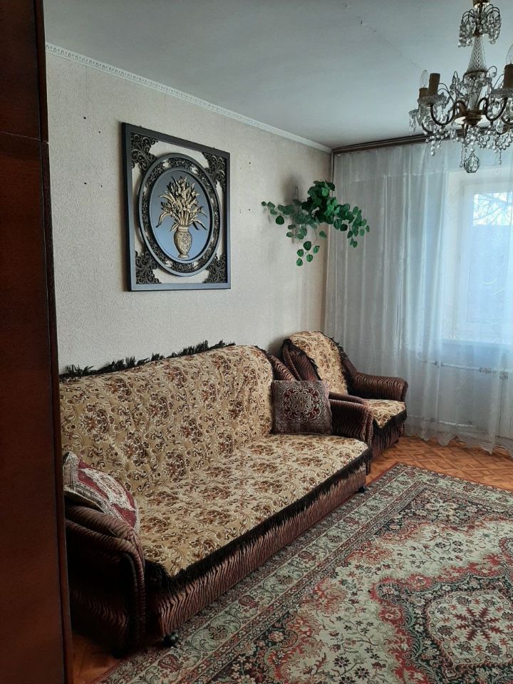 Мебель: В спальне: двуспальная кровать, шкаф, трельяж, 2 тумбочки. В зале: диван (раскладывается, двуспальный), кресло, шкаф На кухне: кухонный гарнитур, обеденный стол. Техника: плита с духовым шкафом, стиральная машина, телевизор, холодильник, чайник, домофон.
