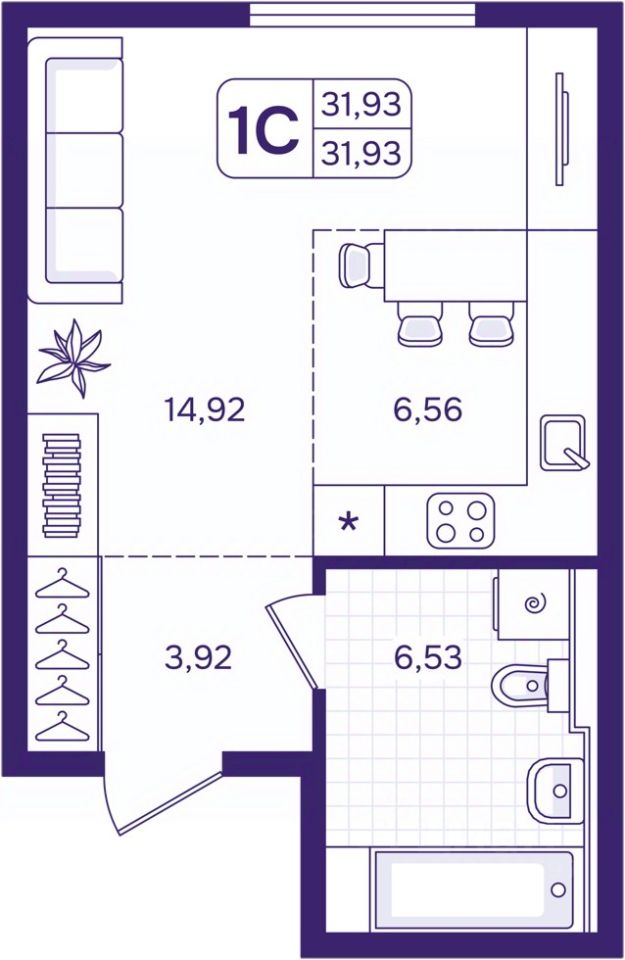 1-комн. квартира-студия от застройщика в ЖК ''Астон. А зори здесь тихие'' на 8 этаже. Квартира без отделки, полностью готова к чистовой отделке и дальнейшему ремонту. Общая площадь: 31.93 кв.м., площадь гостиной 21.48 кв.м., из которых 6.56 кв.м. выделено под кухонную зону. Все окна выходят на одну сторону. В квартире один совмещенный санузел. Высота потолков 2.87 м.