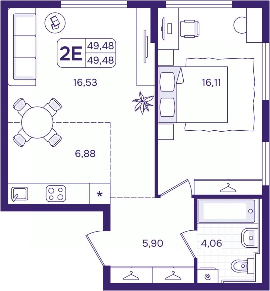 Продается двухкомнатная квартира с европланировкой от застройщика в ЖК ''Астон. А зори здесь тихие'' на 3 этаже. Квартира без отделки, после получения ключей можно делать ремонт. Общая площадь: 49.48 кв.м., жилая: 32.64 кв.м., суммарная площадь гостиной-столовой с кухонной зоной: 23.41 кв.м. Европланировка, в просторной кухне-гостиной удобно как готовить, так и отдыхать. Квартира угловая, очень светлая, естественная вентиляция при открытии окон. В квартире один совмещенный санузел. Высота потолков 2.87 м.