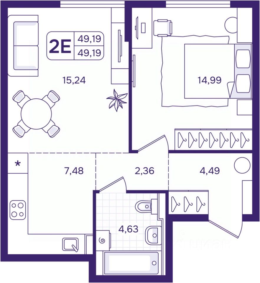 1-комн. квартира от застройщика в ЖК ''Астон. А зори здесь тихие'' на 2 этаже. Квартира без отделки, полностью готова к ремонту. Общая площадь: 49.19 кв.м., жилая: 14.99 кв.м., площадь просторной кухни-столовой: 22.72 кв.м. Все окна выходят на одну сторону. В квартире один совмещенный санузел. Высота потолков 2.87 м.