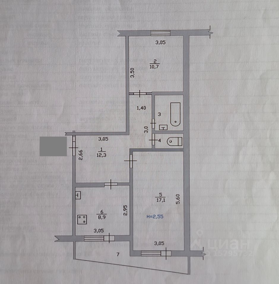 Состояние: Квартира очень теплая, на окнах в спальне и кухне установлены пластиковые стеклопакеты, в зале - деревянное окно, потолок побелен (в гостиной выровнен), полы: линолеум, оргалит, на стенах обои, межкомнатные двери, сантехника и эл.