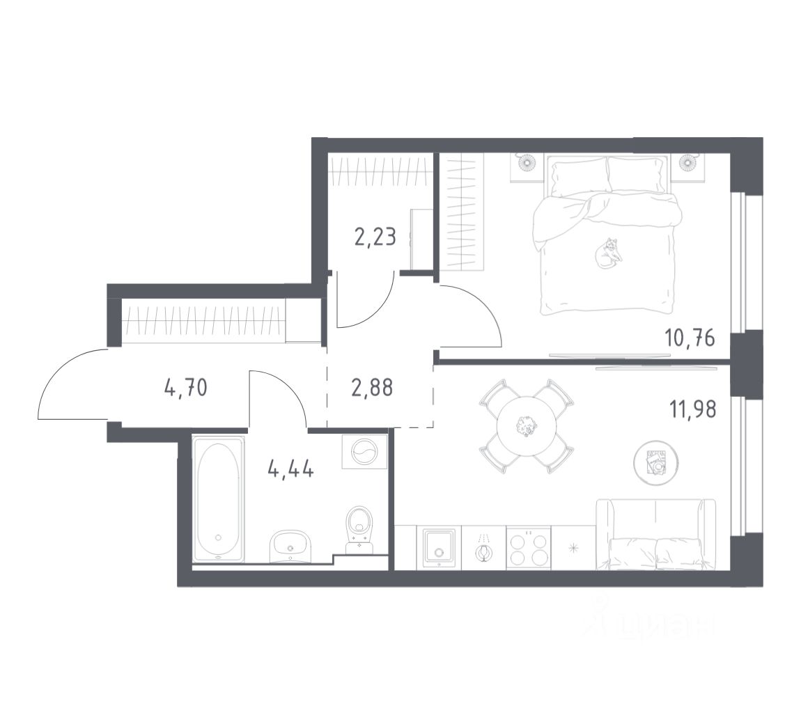Общая площадь36,99 м2