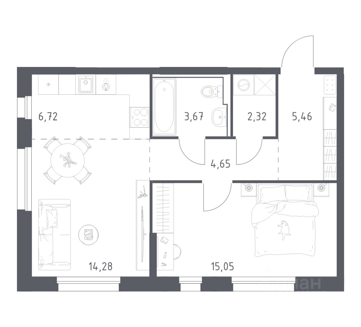 Общая площадь52,15 м2
