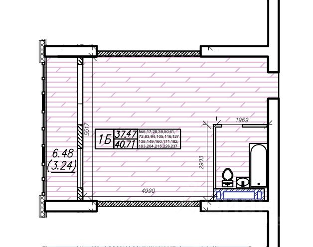 Общая площадь40,71 м2