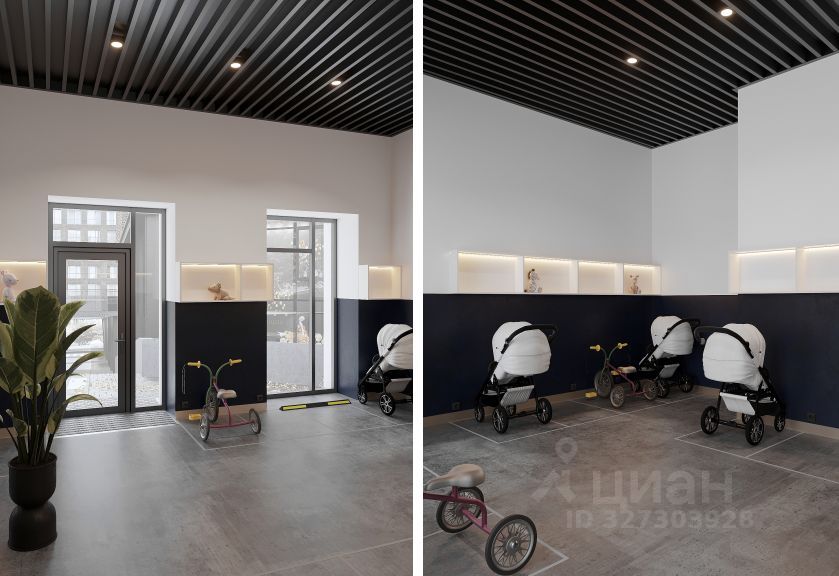 Собственные соседские центры на первом этаже каждого дома. Это коллективное пространство, предназначенное только для соседей дома. Включены: коворкинг зона, место для настольных игр, для просмотра фильмов, кухонная зона. А в непогоду маленькие жильцы смогут здесь играть и даже праздновать свои дни рождения.