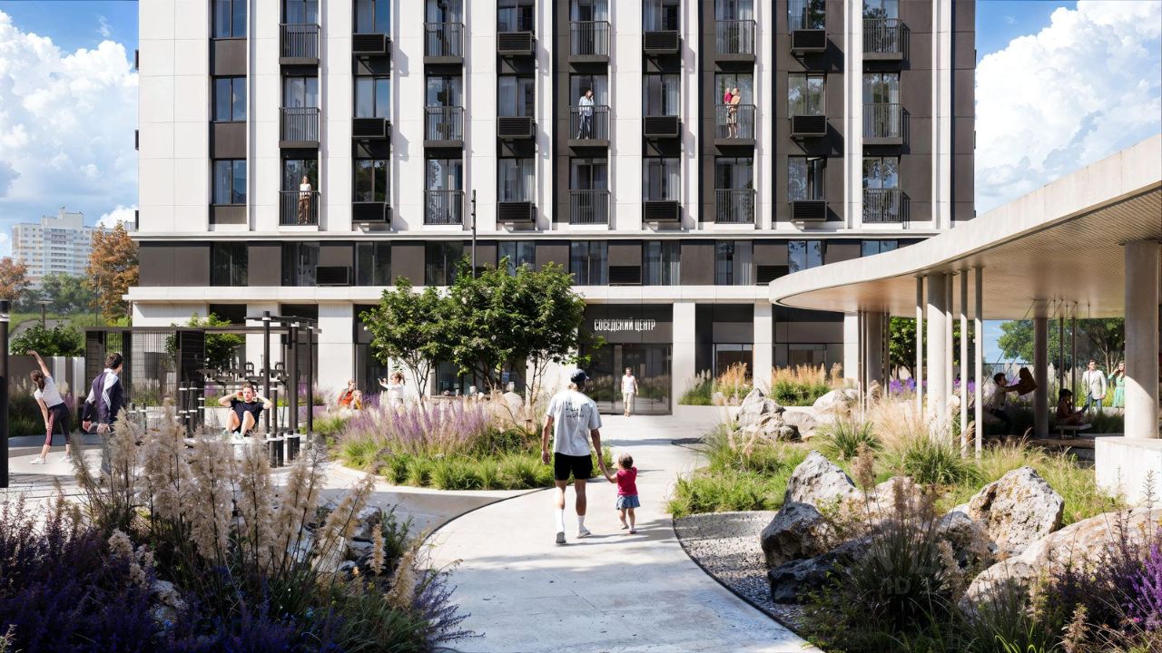 Собственные соседские центры на первом этаже каждого дома. Это коллективное пространство, предназначенное только для соседей дома. Включены: коворкинг зона, место для настольных игр, для просмотра фильмов, кухонная зона. А в непогоду маленькие жильцы смогут здесь играть и даже праздновать свои дни рождения.