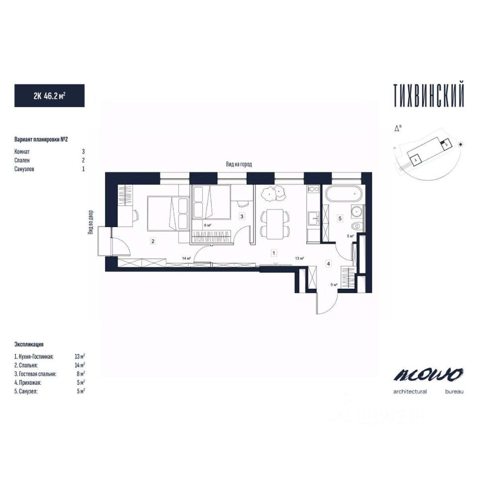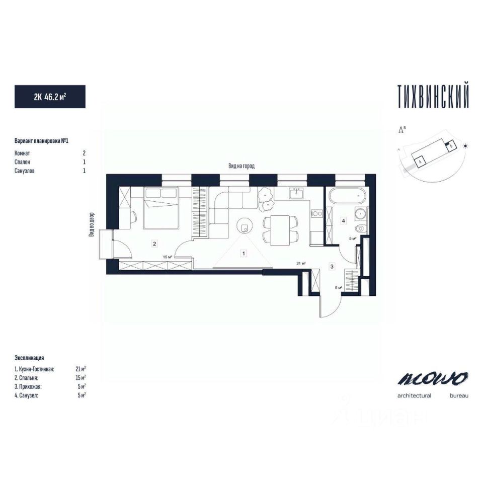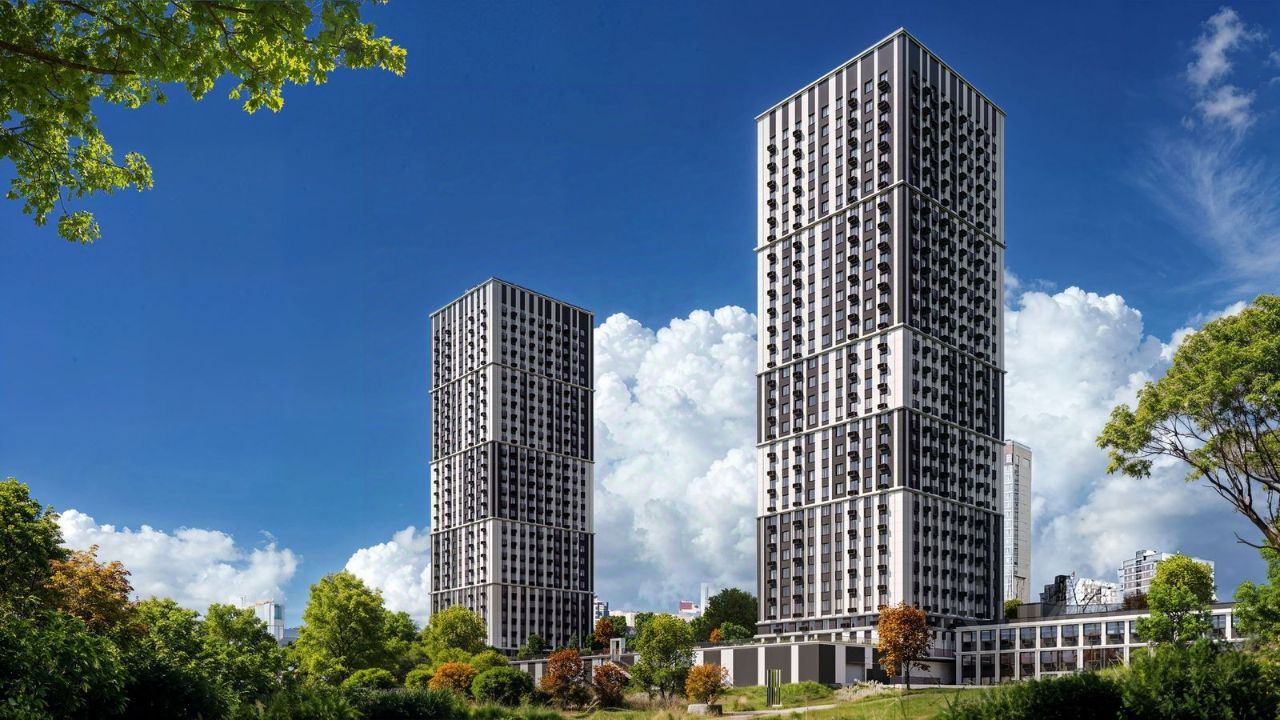 Тихвинский состоит из двух 29 этажных домов, объединенных стилобатной частью, в которой находится подземный паркинг.