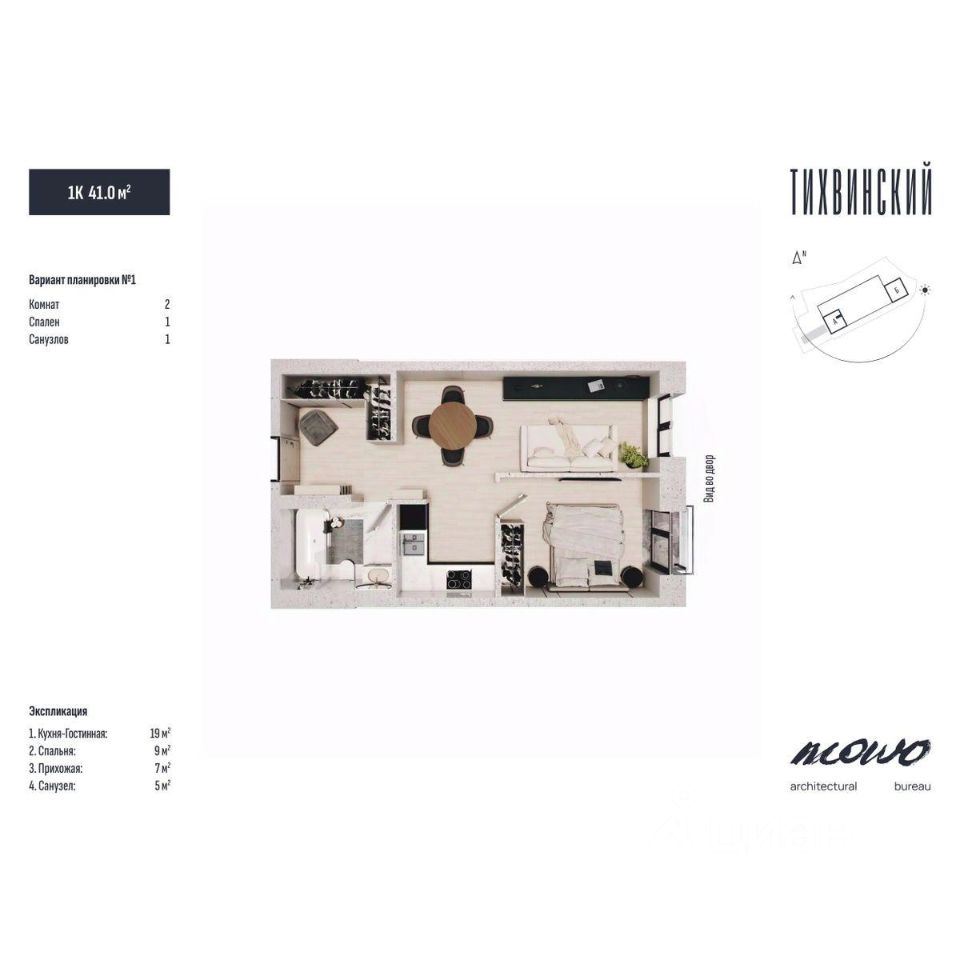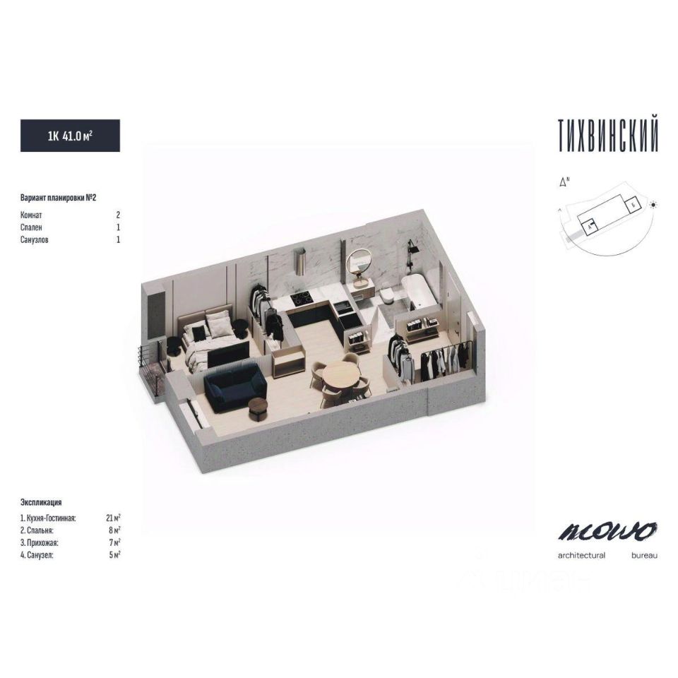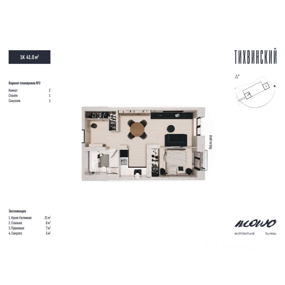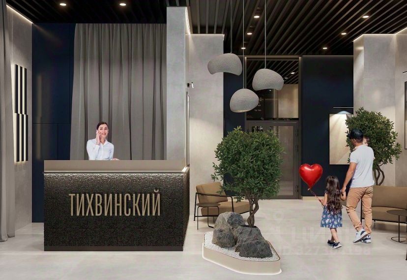 Тихвинский состоит из двух 29 этажных домов, объединенных стилобатной частью, в которой находится подземный паркинг.