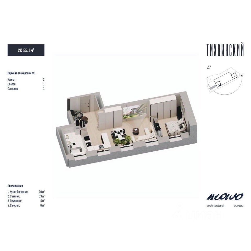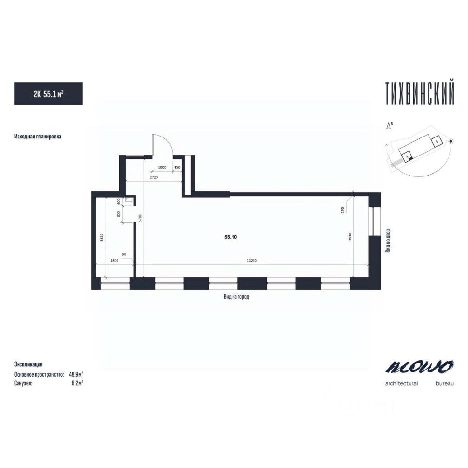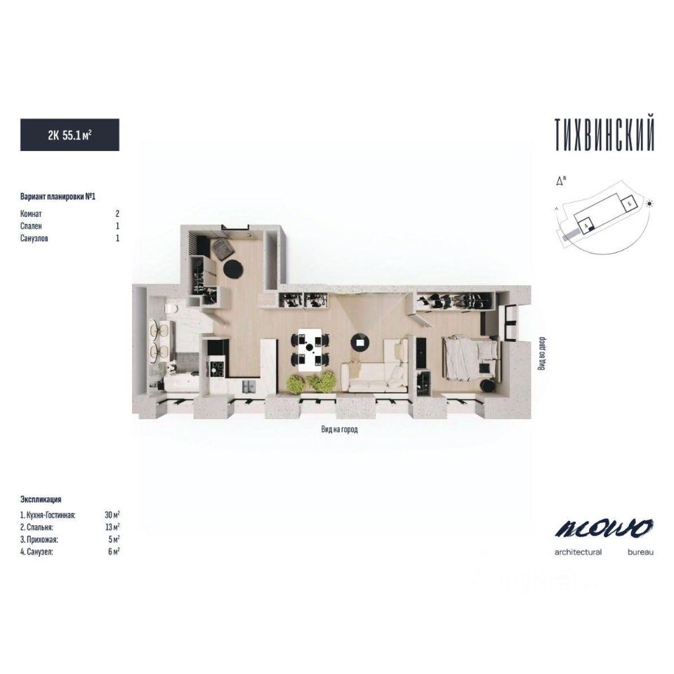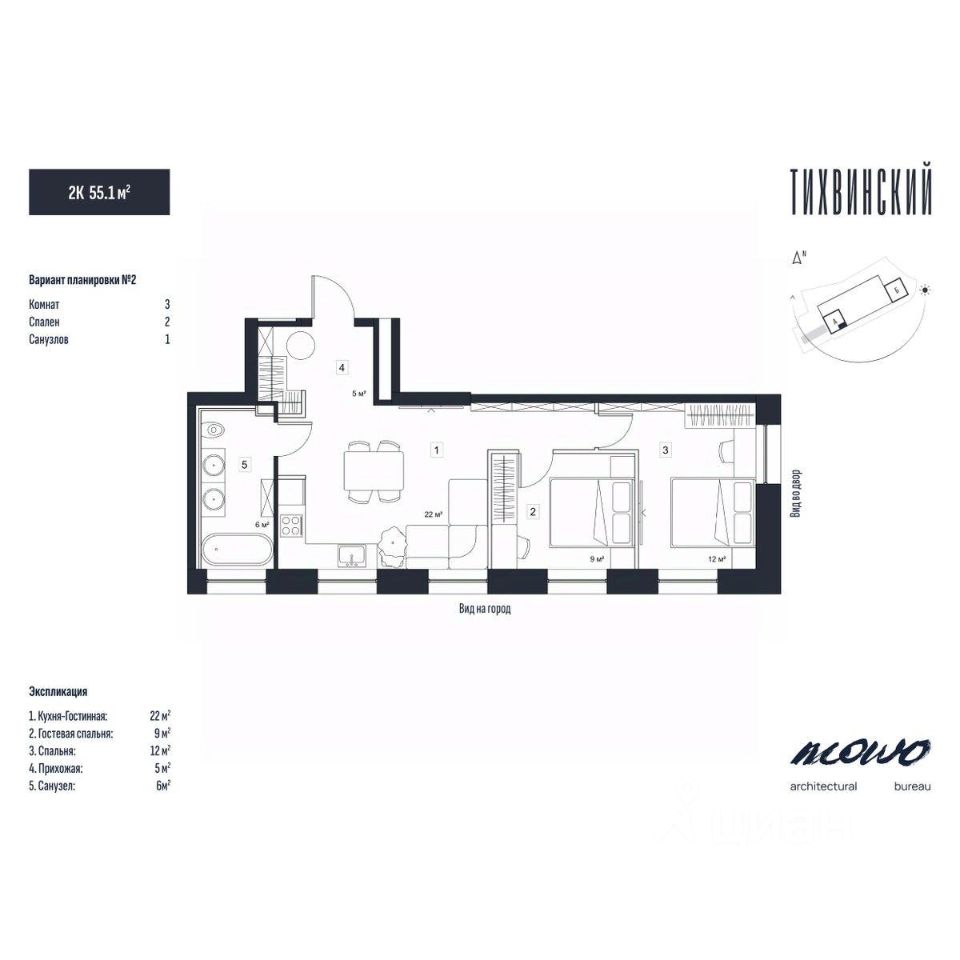 Общая площадь55,1 м2