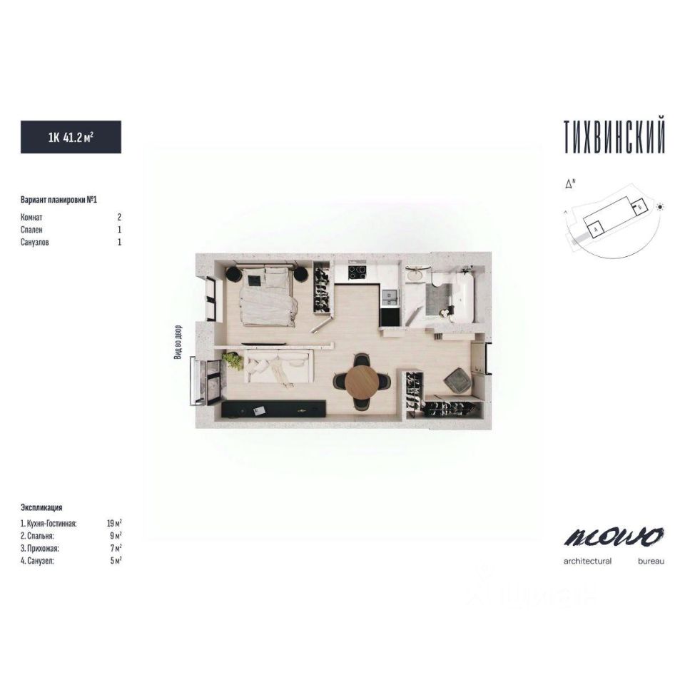 Тихвинский состоит из двух 29 этажных домов, объединенных стилобатной частью, в которой находится подземный паркинг.