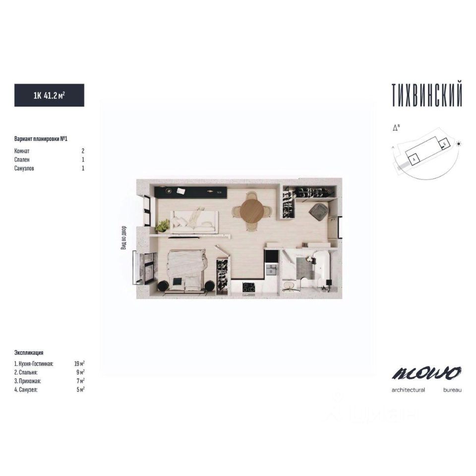 Тихвинский состоит из двух 29 этажных домов, объединенных стилобатной частью, в которой находится подземный паркинг.