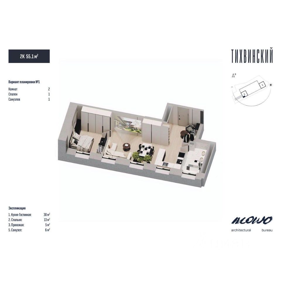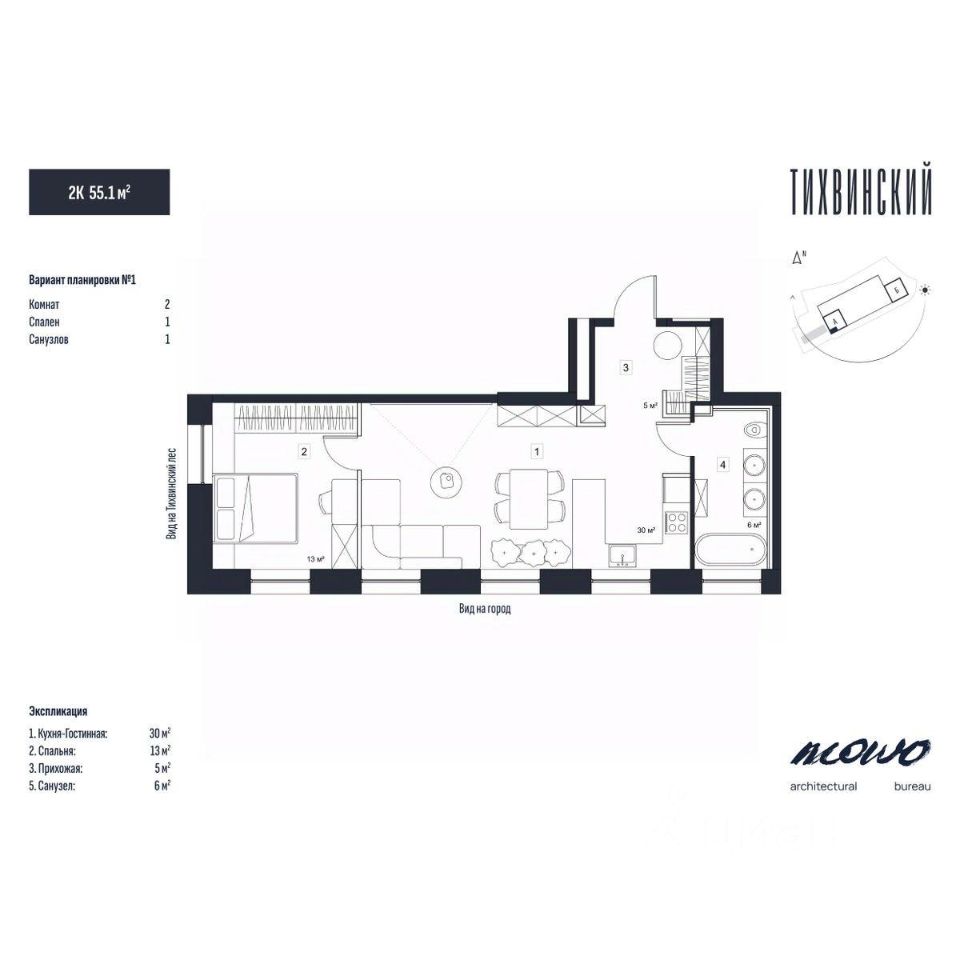 Тихвинский состоит из двух 29 этажных домов, объединенных стилобатной частью, в которой находится подземный паркинг.