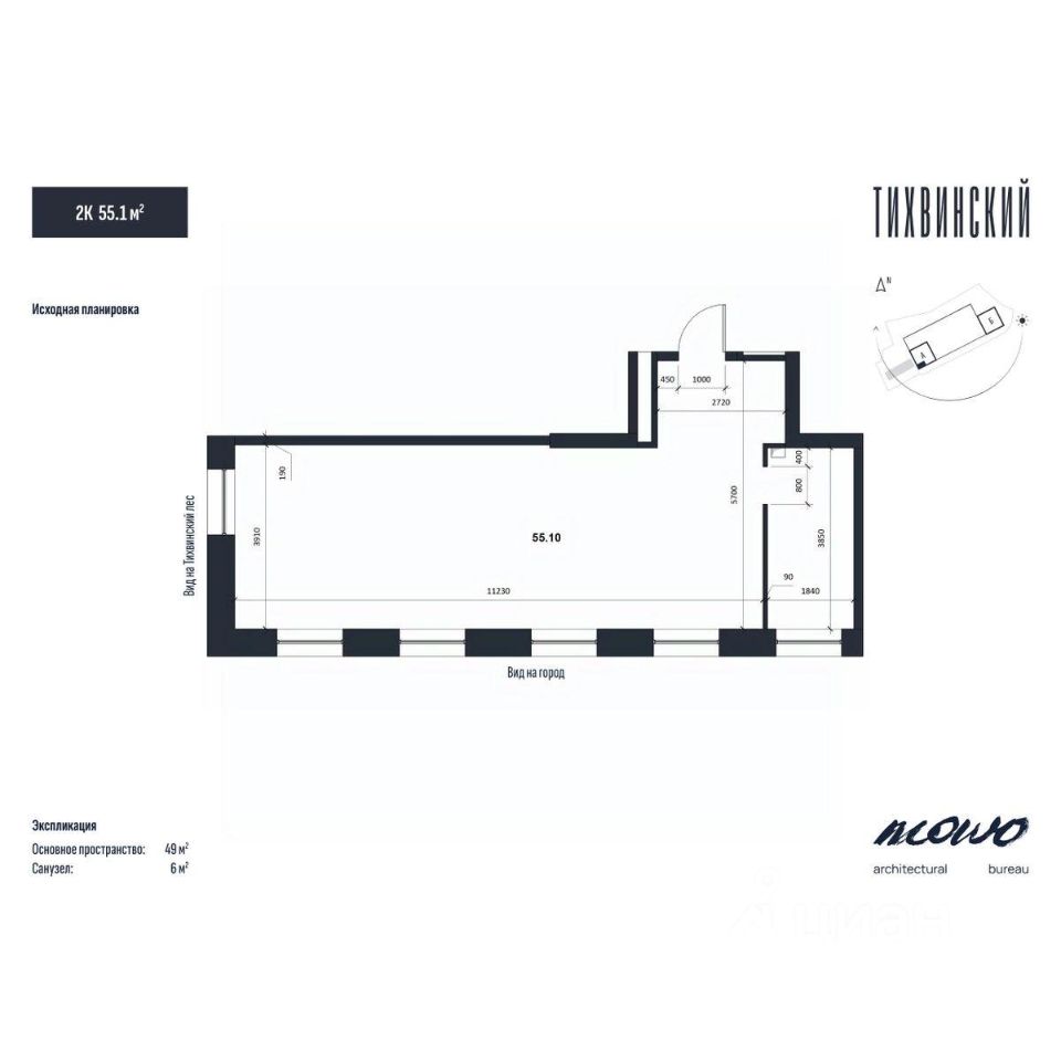 Общая площадь56,1 м2