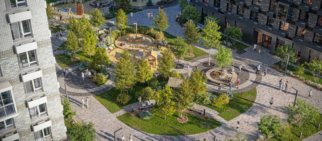 В жилом квартале появится уникальное общественное пространство с пешеходным бульваром и зонами для отдыха. На первых этажах откроются кафе, магазины и полезные сервисы, куда можно спуститься за горячим кофе или свежеиспечённым хлебом. Из каждого дома будет выход в уютный двор-парк с современными детскими и спортивными площадками. Здесь мы посадим цветы и деревья: будет приятно отдыхать или почитать книгу. Артикул 1050658 (Застройщик ООО ''СЗ ФОРМУЛА-ДВ'')
