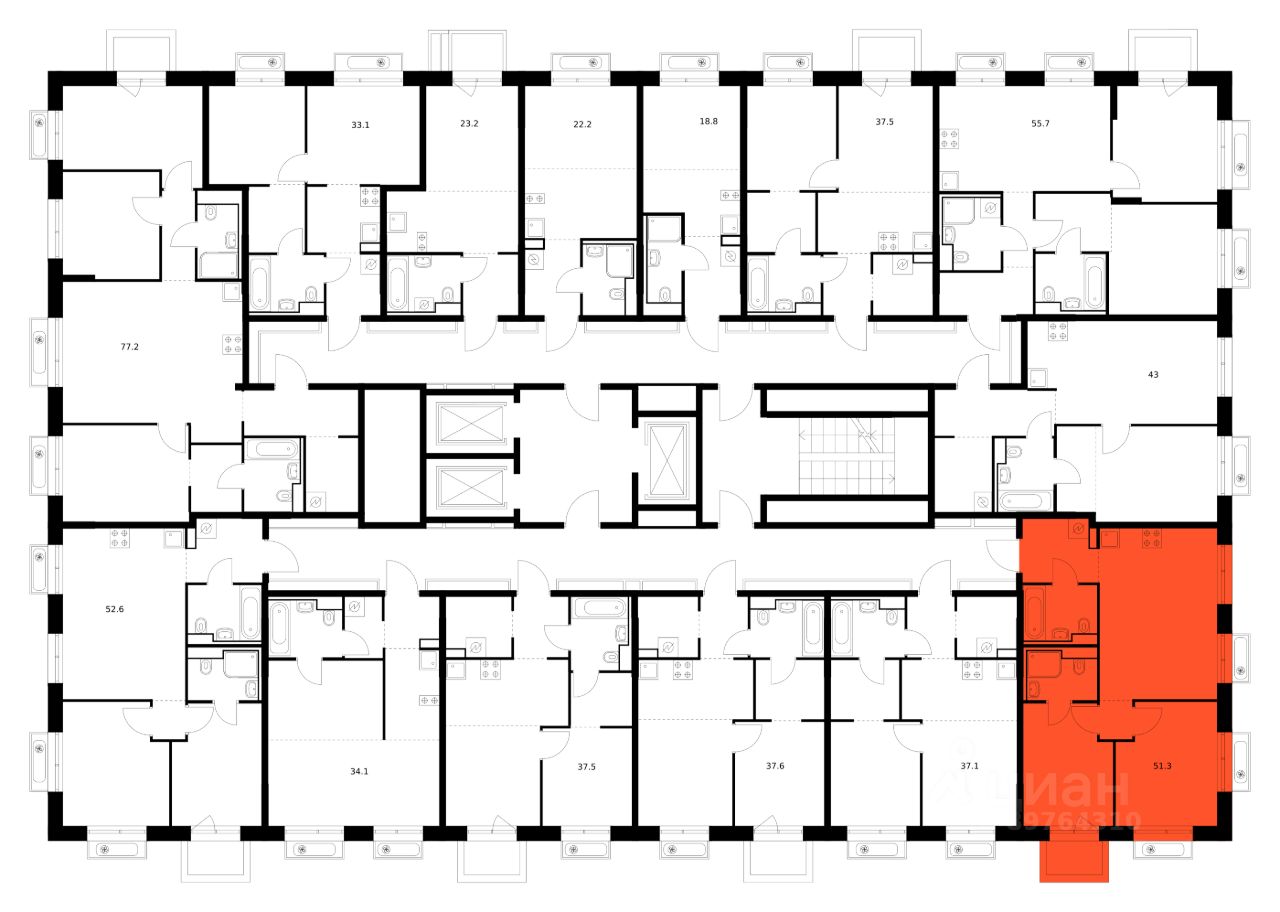 Общая площадь51,3 м2