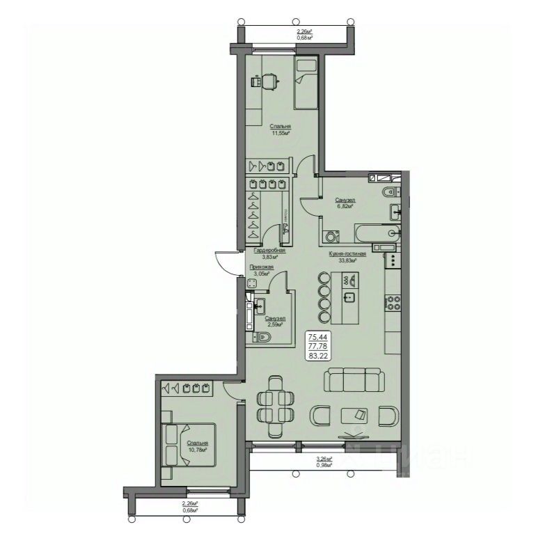 продам 3-к, Мыс Кунгасный, 3б19 367 220 ₽