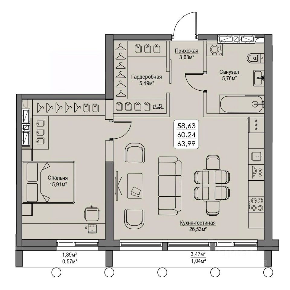 Общая площадь60,24 м2