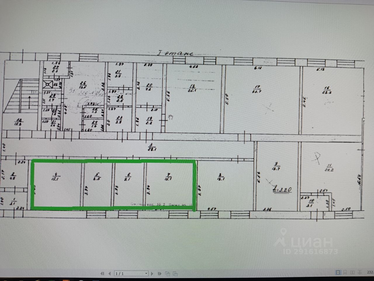 Обязательное условие продажи: обратная аренда помещения площадью 47,8 кв. м на 11 месяцев (вынос оборудования). Помещения выделены на плане зеленым цветом.