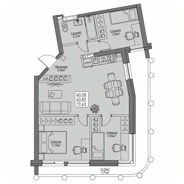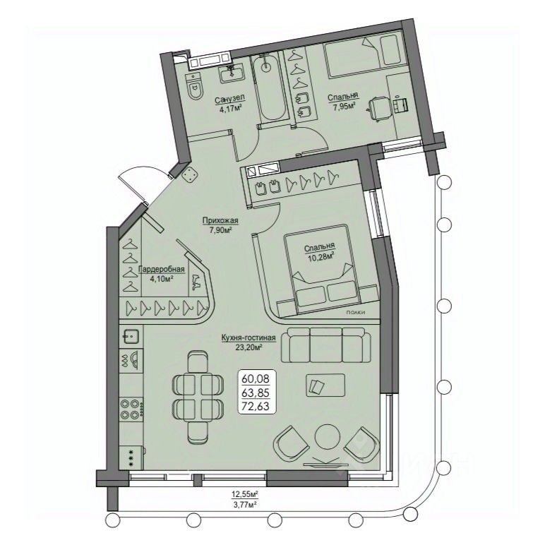 Продаётся 1-комнатная квартира в сданном доме (Мыс Кунгасный, 3Б), срок сдачи: IV-кв. 2024, общей площадью 63.85 кв.м., на 4 этаже. Новый жилой дом от застройщика ''Элемент-С'' расположен по адресу город Владивосток, улица Мыс Кунгасный.